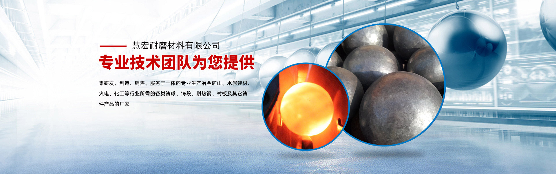 慧宏耐磨是一家集研發(fā)、制造、銷售、服務于一體的專業(yè)生產冶金礦山、水泥建材、火電、化工等行業(yè)所需的各類鑄球、鑄段、耐熱鋼、襯板及其它鑄件產品的廠家。
